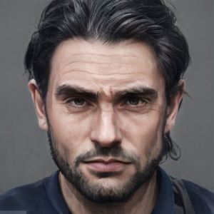 Brok is a rugged, but handsome, half-elven male of around 50. He has a fine layer of stubble, large amounts of muscle and short cut black hair that is yet to see that caress of grey that human males of his age tend to show