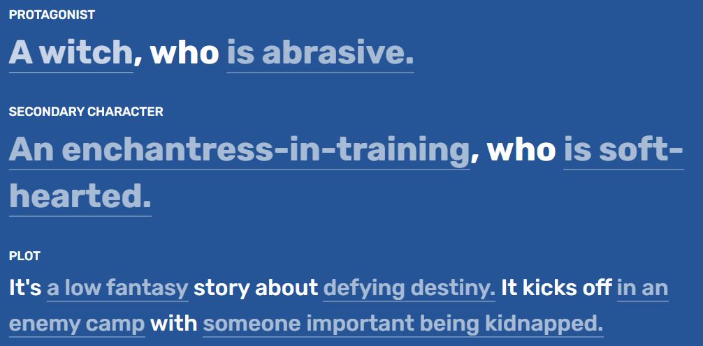 - “randomly generated pot” (tonight we are using one from here: https://blog.reedsy.com/plot-generator/fantasy/)