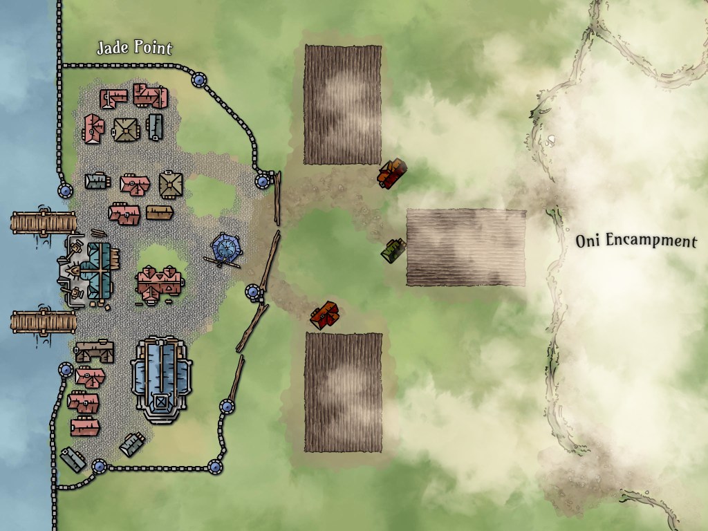 Oni stalk the mists and launch raids upon the denizens of Jade Point and until recently there was a sizeable force there to defend the people from the attackers.