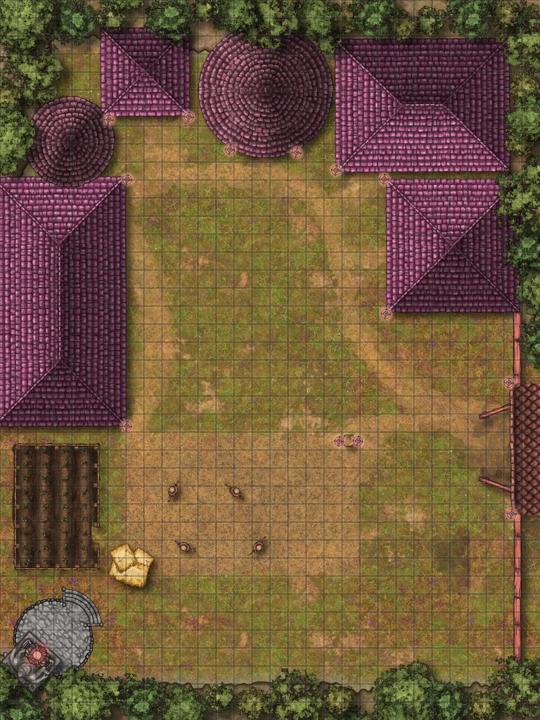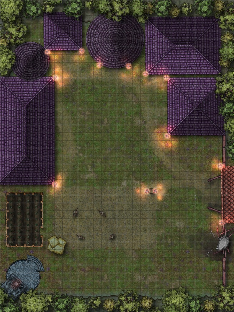 We have a map of the temple grounds but not he buildings, the buildings would be simple (and I donโt really want to go in an design little rooms for them all. Sorry!) so I would have them have one or two rooms where the players can hide โ the more people that hide there the easier it will be for the beast to find them โ splitting up when hiding in buildings is key. But if they can make it out the gate then there is nothing stopping the party from hiding and running through the woods where there is potentially countless places to hide โ and for this I will create one or two more maps this weekend to capture this ability to leave the temple and travel on foot out of there.