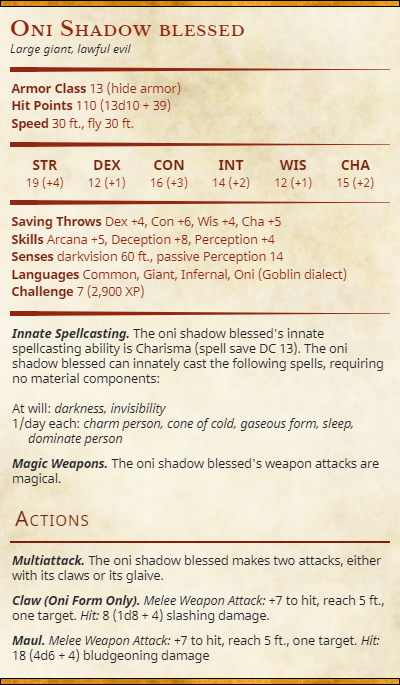 Mugrave stood within the shadow, a darkened mass that quivered and shook. Even in her Oni form prolonged exposure to the Shadow was detrimental and she knew that she needed to think of a way out of this predicament and fast. “I tested them. The foreigners. I know what their strengths and skills are. The quaigin and night prowlers were not wasted. I know what they are capable now and just need more time to gather the right strength and I can deal with them myself.”