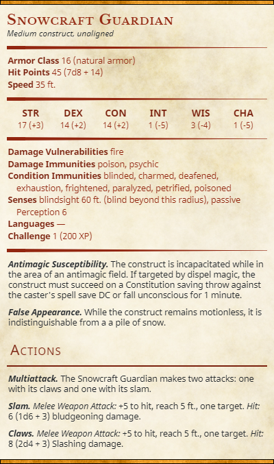 The twenty first day of Dice-ember see’s our party entering deeper into the quarry. Having fought off cavern dwelling creatures they turn the corner just in time to witness the enchantress finish her ritual to create a Frostkeeper Construct.