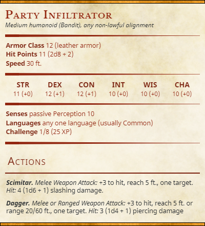 Another fight-night is here and this week we look at infiltrators and competitors of the party and their mission. Just as the King can hear his queen talking to him there are a few who walk the halls aware that the queen is real. And also, aware of just what the queen is. Intrigued? Well I’d hope so. In fact let’s not delay any longer and let’s roll into tonight’s content – Stat blocks!