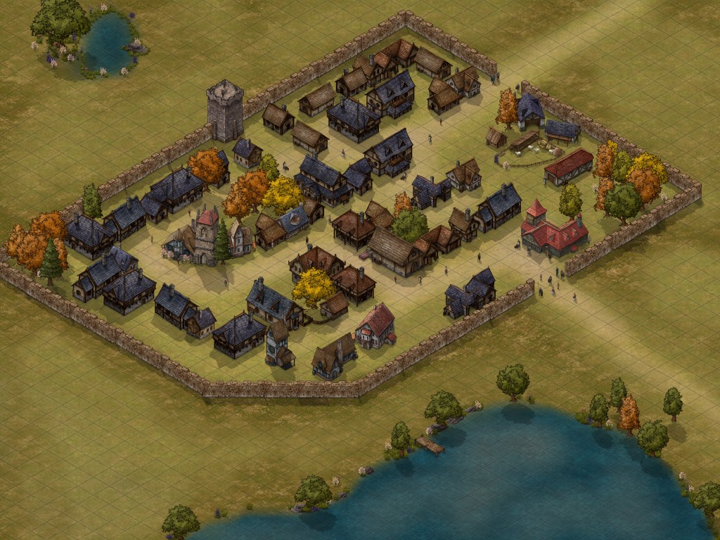 Hildebek town is quite small having under a hundred people living there. Two inns populate this town and a variety of shops and merchants that call this place home. Built around the watchtower that used to be a military the tower and walls were mostly repaired. The ruins and rubble from the previous buildings were replaced by houses and people began to move here as a town between two major cities.