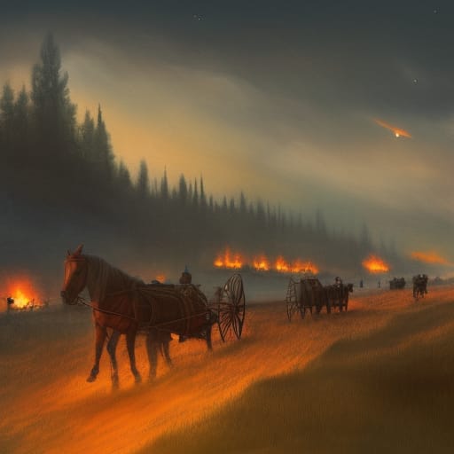 “I never imagined such rage, such unbridled bloodshed. We were lucky to escape when we did” the old woman said as she looked backwards at the fires. Clutching at the bundles of belongings she managed to rescue from the village before fleeing she felt a pang of guilt. It was the right decision to leave those outsiders without a wagon, they would slow down the raiders, the beasts from the forest. When they were done with those adventurers they wouldn’t be able to catch up with them.