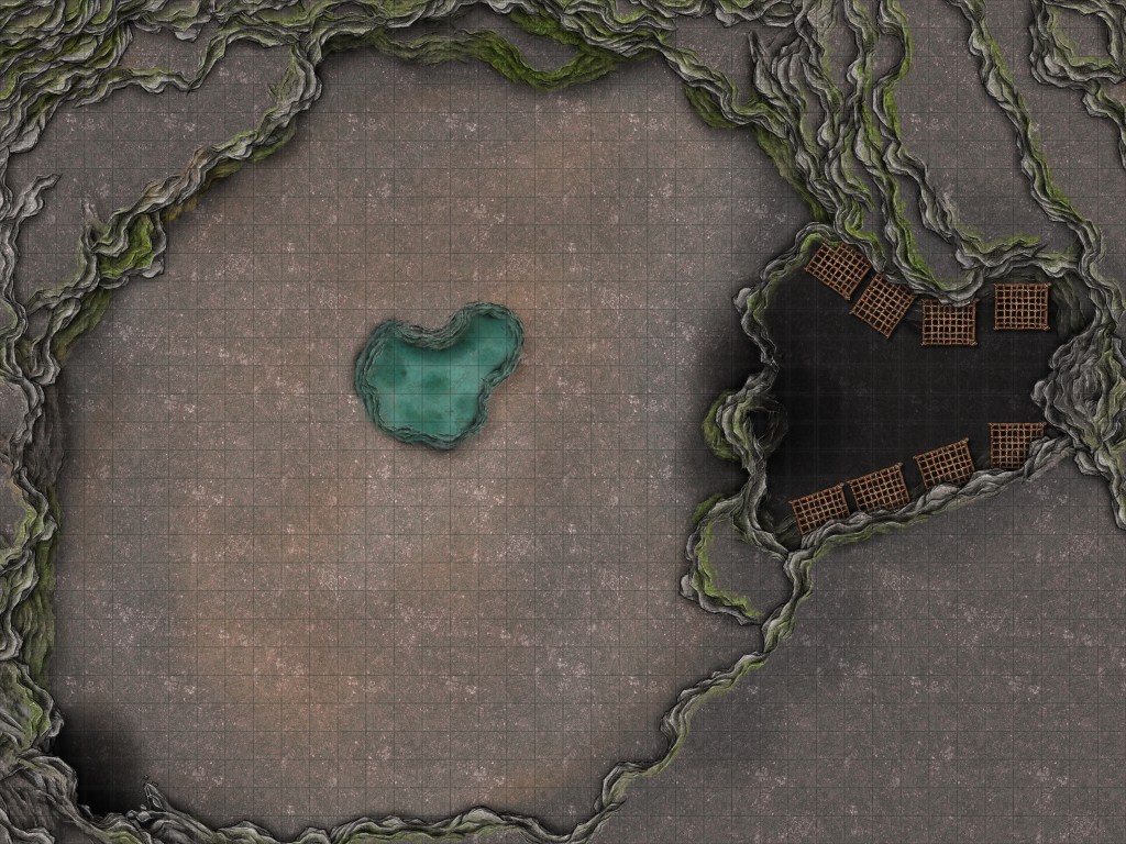 A large cavern with a small cave on one side is known as the Durkenstaff cavern. A hole in the top of the cavern allows bats and birds to fly in if they dare but also sky access for the Manticore. It also brings in rain water into a pool that’s featured in the middle of the cavern floor.