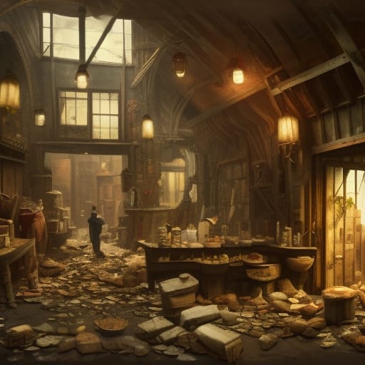 The sight was almost too much to bear for Kit as she looked at the remnants of the goods she had brought into the store just the day before. Smashed bottles, ripped up parchment and books and half eaten food that was smeared and thrown about the shop.