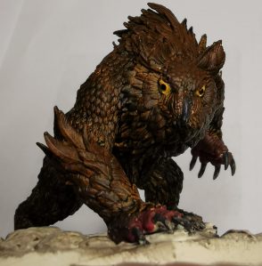 Thanks for joining me tonight for my Painting Night – The Owlbear. One of my favourite creatures of all time, my closest mate printed this model off for me as he knows I adore owlbears. It’s taken me some time but I have finally managed to get some paint of this happy fellow.