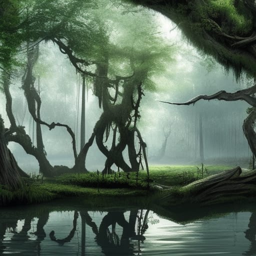The smell of the swamp was pungent enough that when the wind blew from the east the smell travelled along the road that the Party was travelling along. Carmine and Jon had agreed to get the party to the port town of Ferklend. Ferklend found itself on the edge of a dense jungle that gave way very quickly to a large swamp. The volume of vegetation ensured that the waters were murky and unclean to drink from.