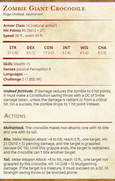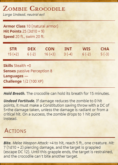 Undead reptiles. The crocodile features in a few horror movies and as well as the zombie. What about zombie crocodiles? these tough creatures are even worse not that they are undead as they are a bit more difficult to kill.