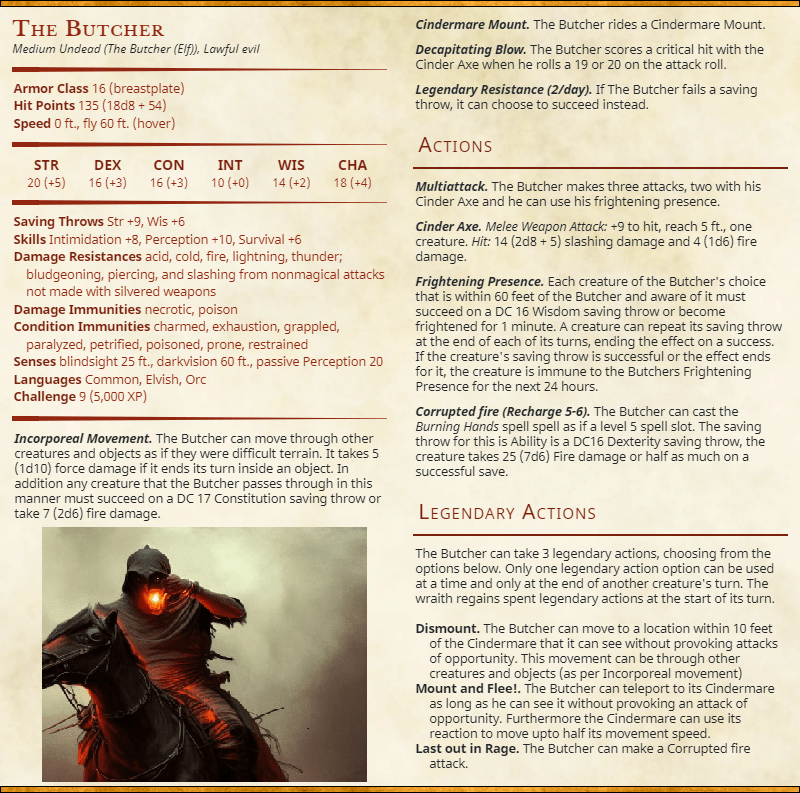 The creature’s raised axe hesitated, a look of hatred flashed across the burnt, cracked flesh from under the hood, and in the beat of a heart the creature hurled itself on the back of the mare. Up close and clear to see in the dying light the mare’s body was sunken and its mane and tail were made from cinder ridden smoke. With a fearsome whinny the creature turned the mare around and kicked out with ember-red hooves into the centre of Arlorns chest pushing the arrows in further and sending the man crashing into the party.