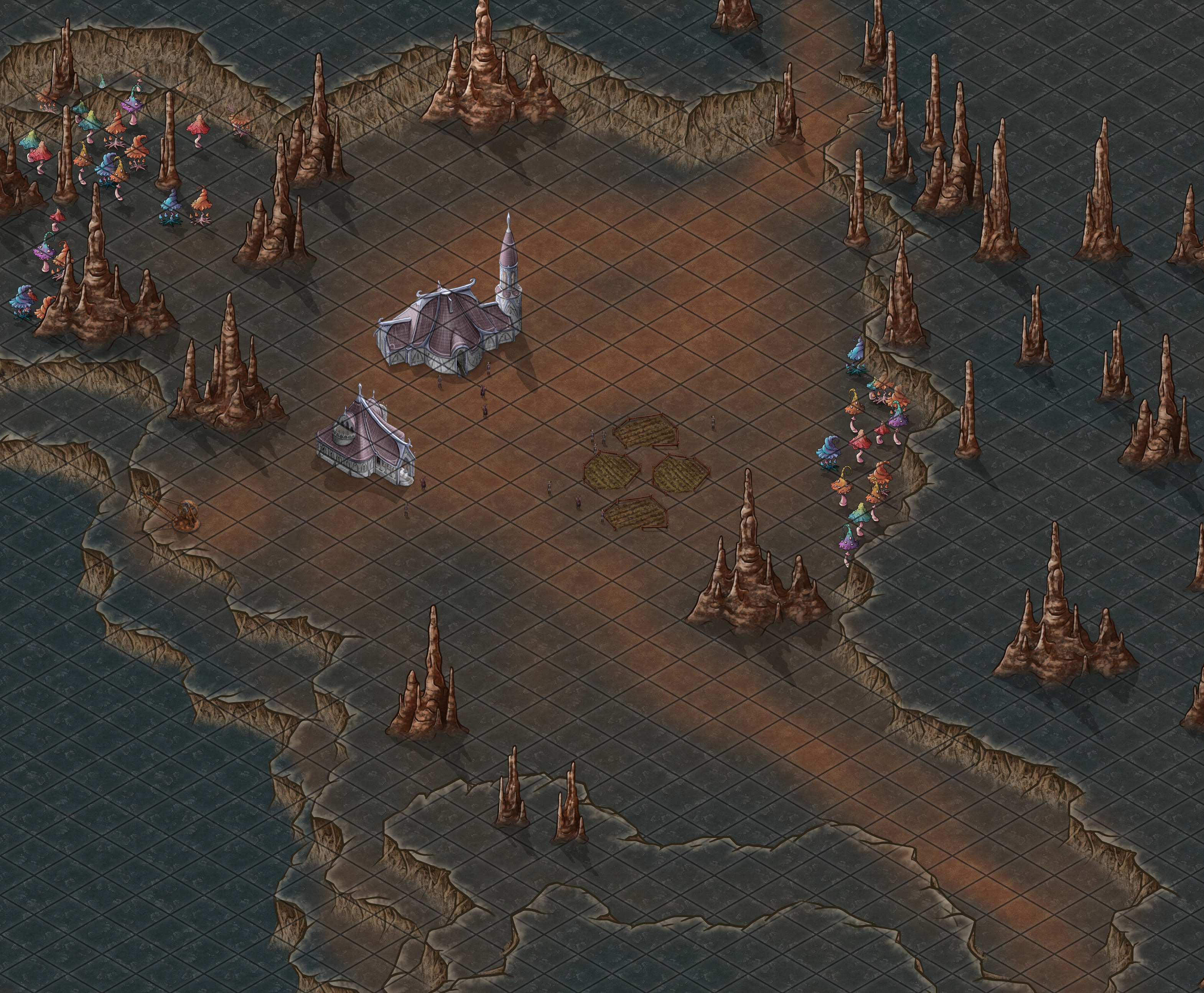 Stalagmites grow in this cavern and they provide places to hide and get cover. But they do this for the attackers as well.