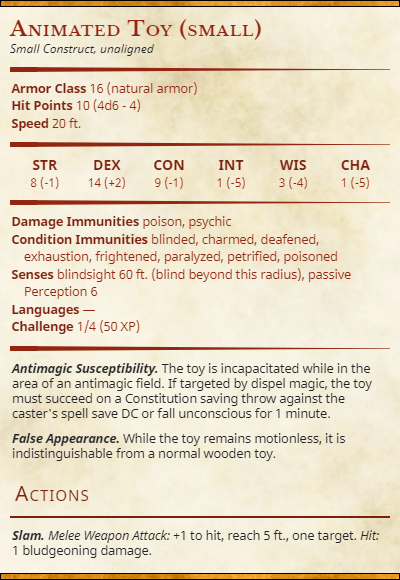 But what emerged from the other side of the chair was not a pink twitchy nose. A tiny wooden hand slowly emerged then several more before in a single movement the tiny wooden people pulled themselves up onto the chairs back and stood up balancing perfectly on the back of the chair. Emerali stood for a moment before she screamed. The toys were cursed, she was expecting a cute mouse or rat but instead she was not ready for the creepy toys that she had found this morning instead of her shoe.
