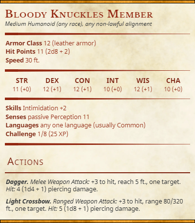 Welcome to the Fifteenth night of Dice-ember and tonight we are looking at a contest of wills in Rimeglenn. With the sudden show of force from the Bloody Knuckles as they ambush the party for ‘questions’ the Rimeguard are quick to respond. Could this create an opening for the party to escape or will the party think of some other way to get past the sheer volume of Bloody Knuckles men and women out there.