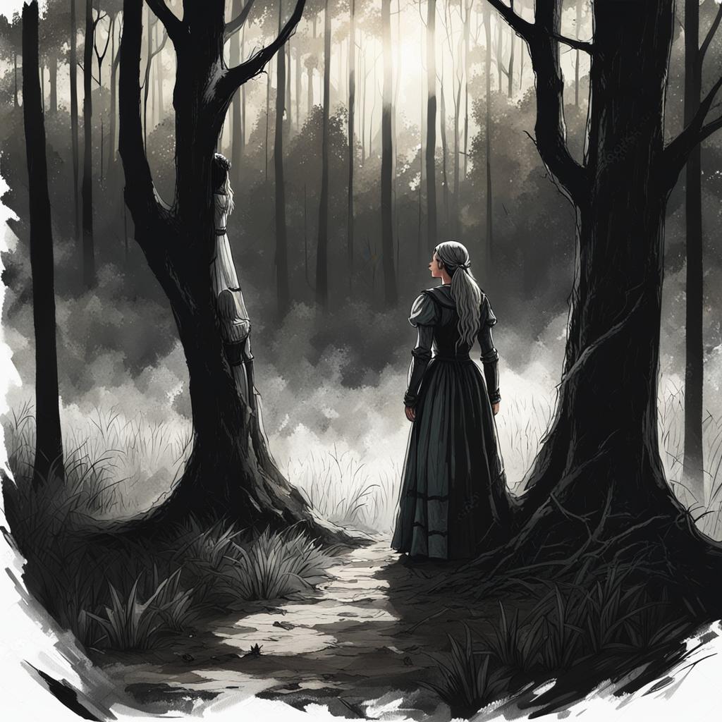 “Cassandra! Taylor!” the voice called out. “Come back to me!” The party moved towards the voice as the desperate cries were replaced with the sound of crying. A woman, middle aged with light blond hair streaked with grey greeted them as she leant against a tree and called out towards the woods. Startled she whirled around and drew a dagger from her boot.