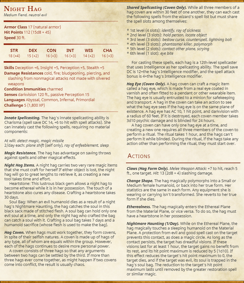 I picture Jaeden as being a very powerful and ancient hag however maybe not the night hag. The abilities, however, make sense for how I see her and suite the level-power that we are going with if the party wish to fight her and the coven.