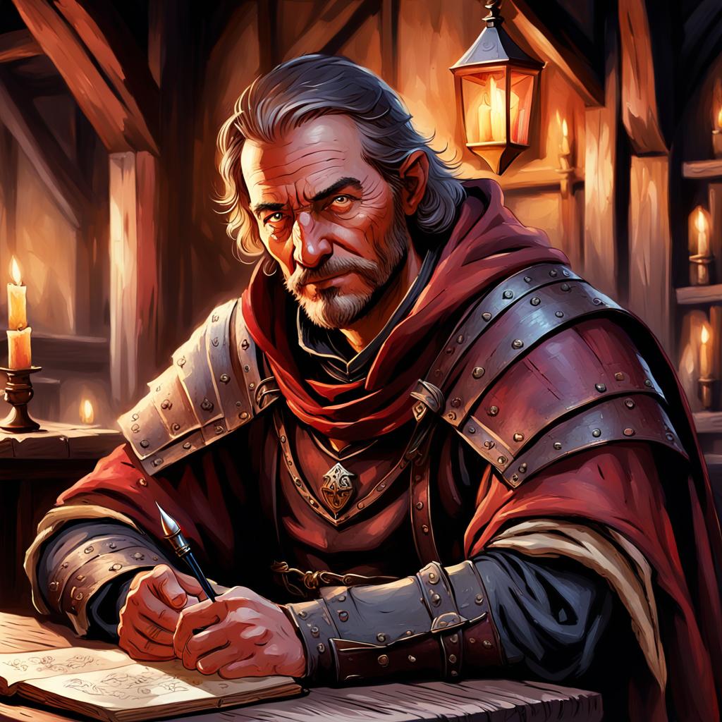 As the party retired back to the Crispy Basilisk, their inn for the night, they walked though the gathered tables looking for a place to sit. Finding a table that looked mostly vacant they approached the table but before they reached it a familiar man sat down with a tankard of ale and a small book. Bastion Sparrow.