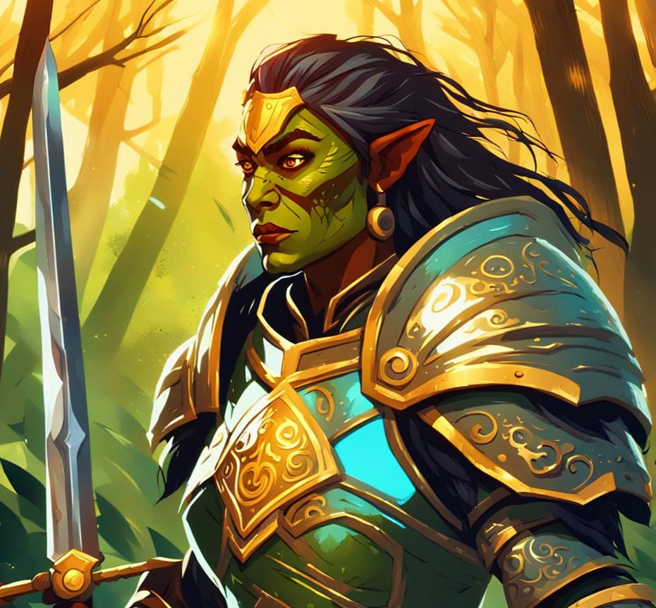 “You hit your head, the chief said get em’ so you grab the humans and bring them out. Or are you too stupid to do that?” said the larger male orc. He stopped grinning when the battle-axe she was carrying spun through the air and punctured his chest. As the orc fell to the ground the other raiders from the outside saw a female orc bathed in radiant sunlight standing over the corpse of her clan mate, blood dripping from the axe she wrenched from his chest.