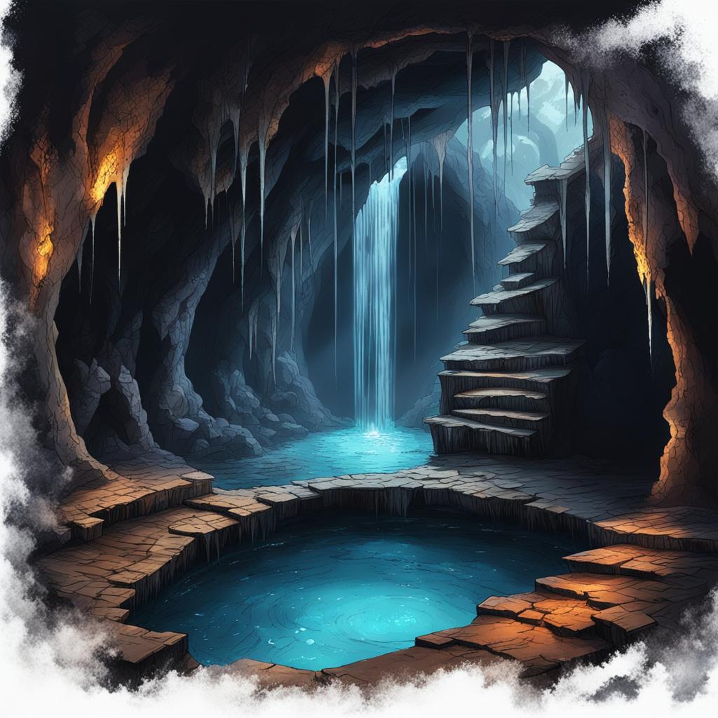 Soon the adventurers stepped into a open space where the water came to their waists and it opened up into a larger cavern. The sound of trickling water came from further into the cavern and the water-worn rock that edges parts of the pools forming a platform where they could step out of the water. The passageways is what drew their attention as they resembled the thin, winding spaces where they fought the creature earlier. A place where they would need to be careful of venturing too deeply into.