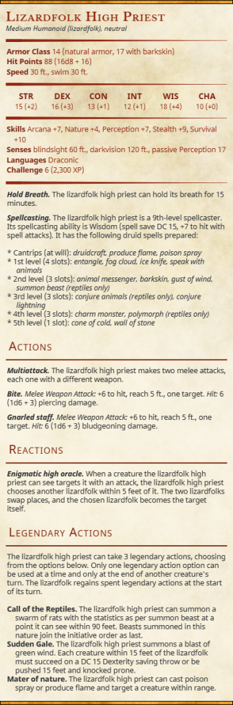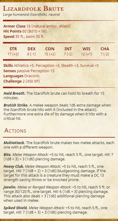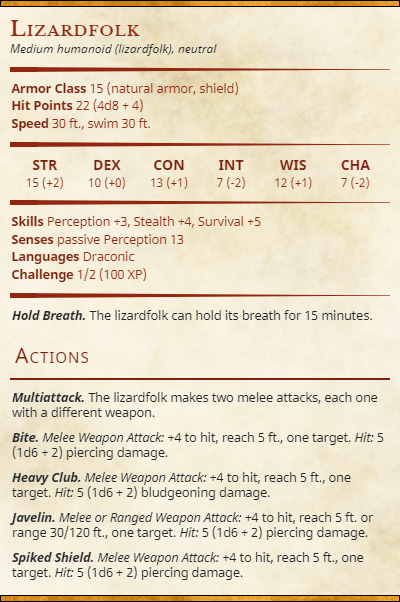 Thanks for joining me tonight for some common, some old and some brand new stat blocks as we wrap up this weeks adventure! Don’t forget to come back tomorrow for more content and, as always, don’t forget to roll with advantage,