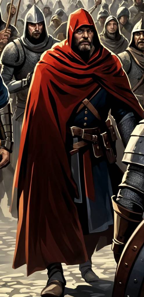 Brother Colin’s voice grows stronger with conviction. ‘I beseech the Council and the good people present, to understand the gravity of this crime. These individuals must answer for their actions, and justice must be served to honour The Red Lord’s memory. These murders are beyond redemption and beyond second chances. They deserve not a second chance or one of redemption but the kindest mercy we can give them, a swift execution.’