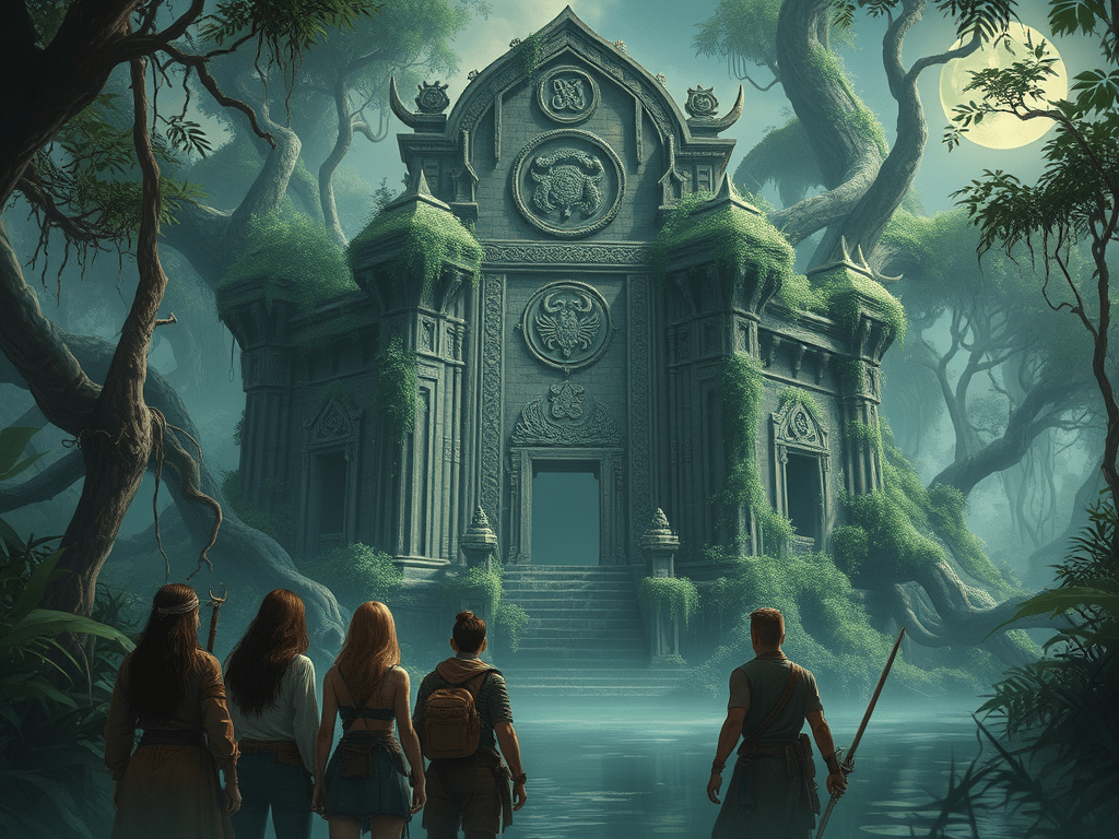 As they ventured deeper, the jungle appeared to reflect C’tik’s changing mood. They caught plenty of creatures for a meal, but these creatures quickly healed, hinting at the temple’s influence. The surrounding wildlife’s noise gradually ceased, replaced by an incessant insect hum, making the party uneasy. Lizardfolk warriors, with colorful frills and crude armor, emerged from the water, advancing towards the party. Despite the danger, the party struggled to prepare for the encounter.