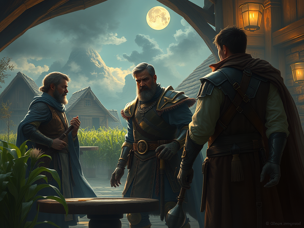 Captain Garet, the primary guard of Temal, meets the party at the Tipsy Daisy Tavern, showing signs of stress. He explains that blood feuds have plagued Temal since the Mallow crop was first harvested, as it’s the only place the plants grow. Garet reveals that Roy Jameson, who loves Simon’s daughter Sara, sought her hand in marriage, which enraged Simon. Since then, Sara has been kept under close watch.