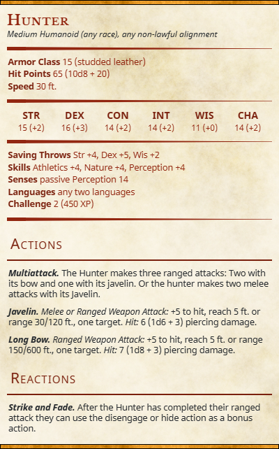 Tonight we meet some of the vicious Omelga hunters that have decided that there is no such thing as friendly competition. With the Hunter and Brawler hunter archetypes the weapons can change between but overall there is a specific style to their combat.