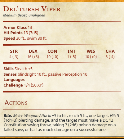 As the snakes slithered out of the baskets and crates their sheer size had the party hesitating. Twice long as a person was tall, if not bigger, these reptiles moved forward with the angular head that identified them as some type of viper. Excessively venomous, aggressive and agitated they advanced in large sweeping arcs towards the party, their tongues flicking menacingly.