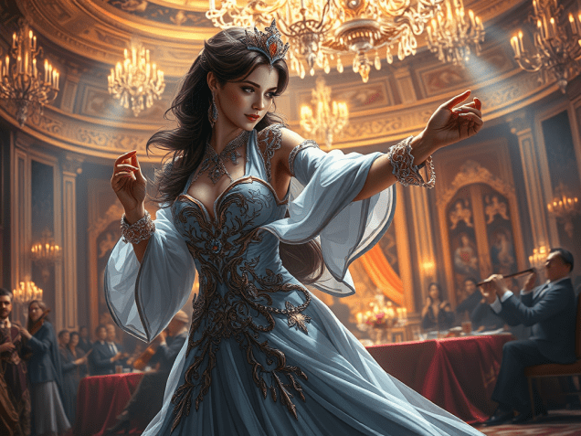‘Your majesties, I wish to honour you with a dance from my kingdom. While I may not be the best dancer I hope to honour my kingdom and present you with the dance of the Naga’ she bent low and the musicians, who she had organised earlier, started to play. Dancing in a hynotic pattern that mimic the vipers of her country she smoothly slid across the ballroom to the claps and cheers of the onlookers. She smiled as her plan unfolded. Soon she would be princess of Arelia and with her new power, and by controlling the future king, she would ensure that her home kingdom of Del’tursh would grow more powerful with the support and wealth of Arelia.