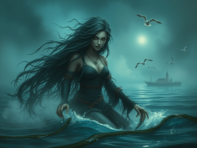 A woman, some would say beautiful if not for the clothes that looked as if it had been salvaged from those lost at sea. As she sunk her toes into the sand, soil and gravel of the land of Launghuiย she inhaled deeply. ‘After years the blood oath is complete. The villagers that pillage the waters and refuse to trade with my sisters and mother is no more. The curse fully enacted.’ as she spoke water dribbled from her mouth.