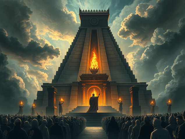 The party arrived in Lumos during its holiest month, when clerics and mages gathered to deliver divine messages. The city had long thrived under the guidance of the High Oracle and the Portent Quartet, but doubts were growing. As they made their way to the towering ziggurat at the city’s centre, the air was thick with anticipation, scepticism, and frustration. Some citizens had suffered misfortunes from failed prophecies, blaming the diviners for their losses. Despite this uncertainty, the people still gathered, kneeling before the temple, waiting for the sacred ritual to begin.
