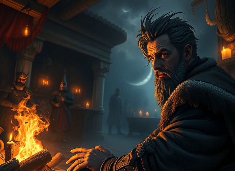 The partyโs quiet moment at the bar took a sudden turn when an unfamiliar coin caught their attention. A green-and-copper piece of unusual shape gleamed under the lantern light, drawing their focus in an almost unnatural way. Their trance was broken by the voice of a charismatic but sharp-eyed stranger, who questioned the coinโs origin. The partyโs uncertain response only widened his grin, revealing that the artifact was no ordinary piece of currencyโit matched one said to be locked away in the kingโs vaults. And with the vault found emptied earlier that day, the coinโs presence in their possession had sealed their fate.