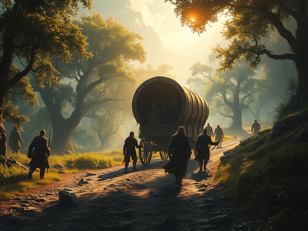 As they looked over the journey and organised supplies they never thought that they could be so wrong about a straightforward job like this one. The next morning they set off with the reasonably heavy enclosed wagon which had been sealed by the driver earlier that morning. The road out of the City was nearly vacant this time of the morning but the party still had an uneasy feeling that they were being watched.