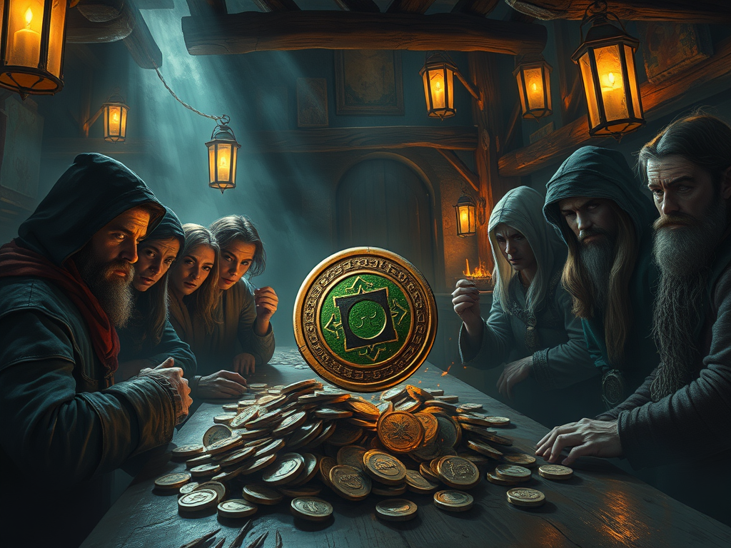 ‘Interesting coin you got there, where’d you get it?’ a voice said to their left that snapped them out of their unknown focus – their food already placed in front of them but the coin remained. The man who asked looked rough but had a charismatic smile about him. A quick trained glance could see that the man had a few accomplices around the room sitting at different tables and keeping a casual eye on the conversation. When the party replied with not knowing where it came from the man grinned.