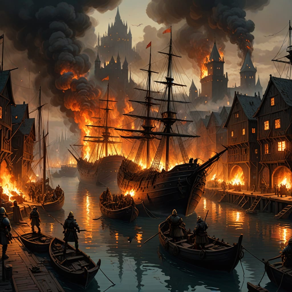 ‘What you’ve done is incredible. We had thought that we’d have to hold them in the docks until the royal guard arrived but we haven’t heard back from the men we sent to the castle. But when they started to spill out of the docks and we saw their galley burning we knew that someone had finished them off.’ Cinella said excitedly.
