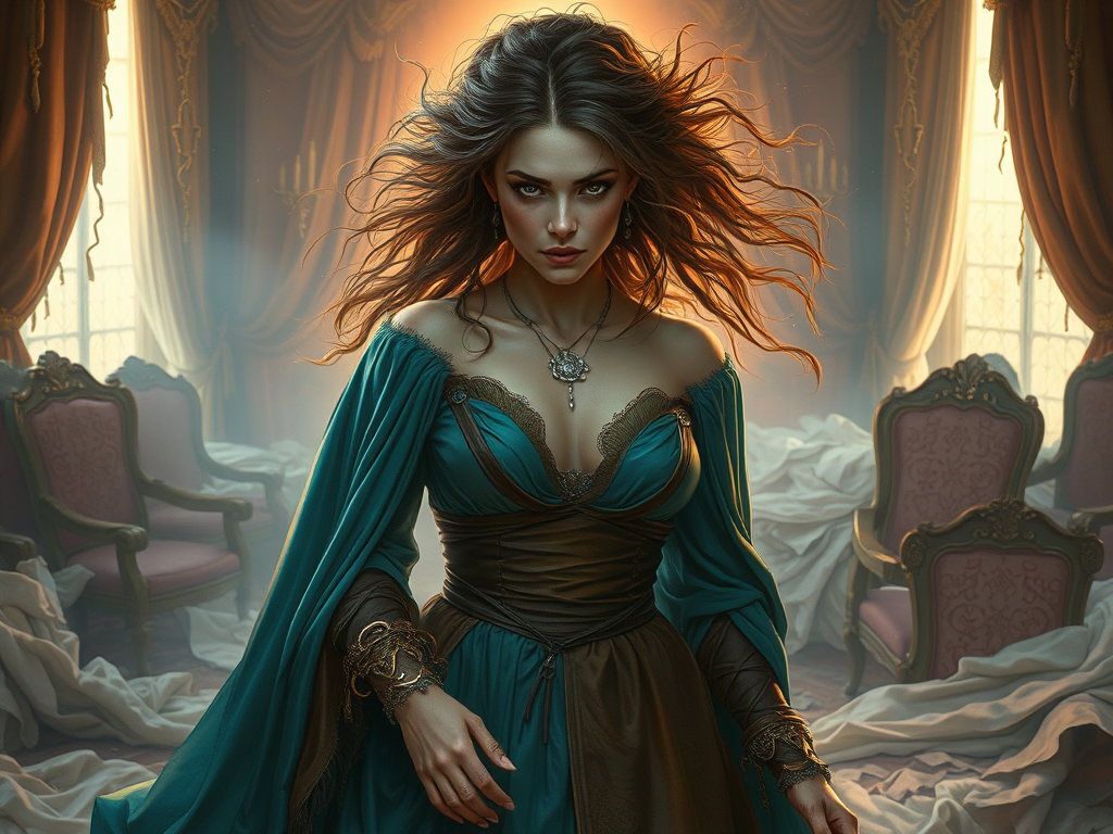 ‘I apologise. I assure you I am not normally this ill mannered or aggressive. I don’t remember much during the incidents,’ she said as she looked and gestured around the room at the broken furniture and cloth. ‘but I do remember the feeling of being trapped, cornered and angry.’ she smiled weakly, a silver necklace around her neck glinting in the light that came from the windows that nearly had no curtains remaining on them.