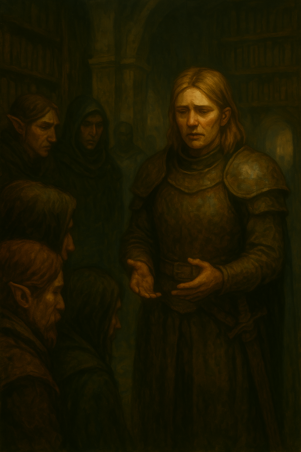 The party took a few moments more to talk to the tall woman, her shoulder length blonde hair resting against her armour and while she wasn’t a fine featured woman her proud features and imposing feature didn’t match the look of desperation nor the sullen look in her eyes.