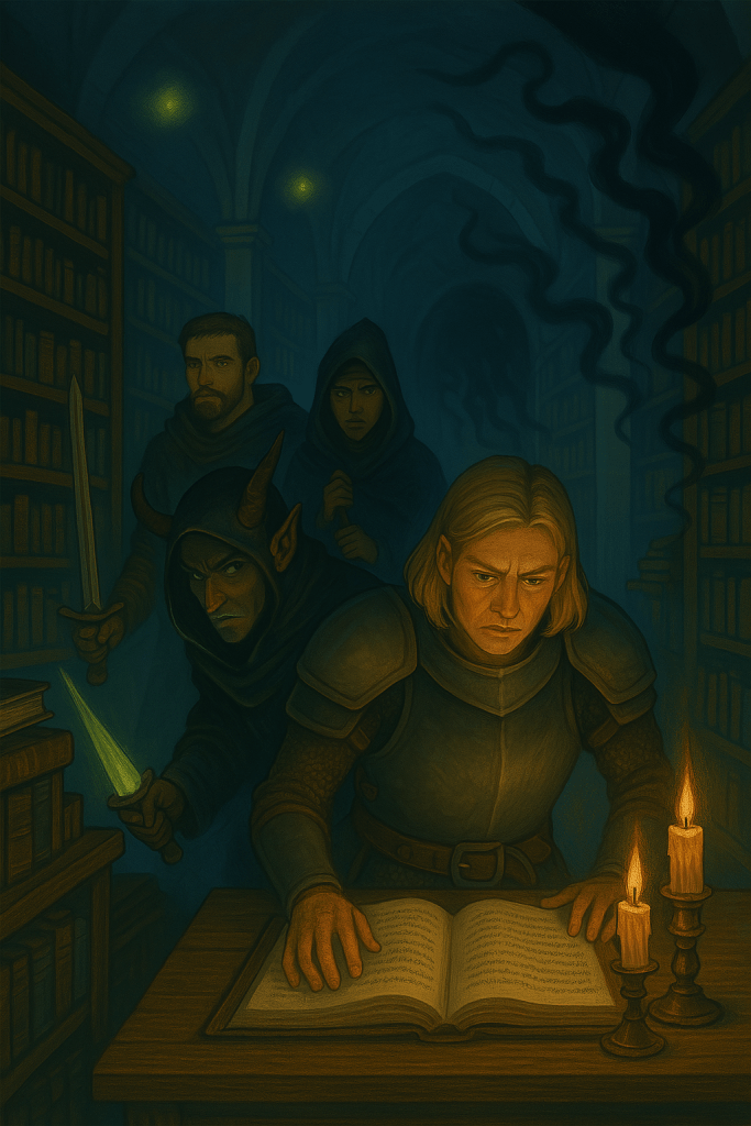 When Sal regained her composure, she met with the party to explain Tamiel’s dagger and their purpose in the city. The blade, dimmed now, had been gifted by a nighthag and was said to hold protective enchantments. Tamiel had come to Miran determined to investigate the mage killings. Sal, skilled with steel, had intended to back him up. But while Tamiel searched for a particular book, Sal had been distracted, caught in conversation with the receptionist. Tamiel, proud and impatient, pressed on alone. He hated to be wrong and had rushed toward whatever clue he believed might solve the mystery. Sal blamed herself for not noticing sooner.