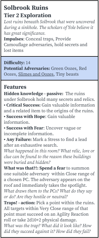 Thanks for joining me tonight for a little expansion for this weeks encounter where we look deeper at some of the environments for the Daggerheart RPG system. Don’t forget to come back tomorrow for the end of week Zine and, as always, don’t forget to roll with advantage,