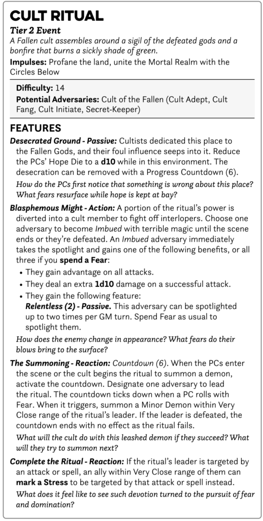 Thanks for joining me tonight for a little expansion for this weeks encounter where we look deeper at some of the environments for the Daggerheart RPG system. Don’t forget to come back tomorrow for the start of a new week of adventure and, as always, don’t forget to roll with advantage,