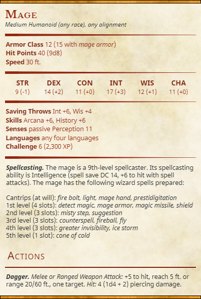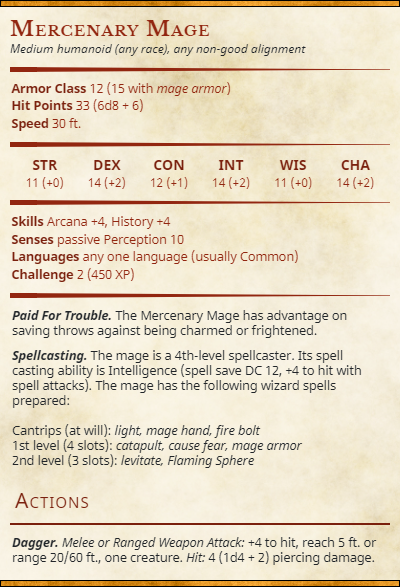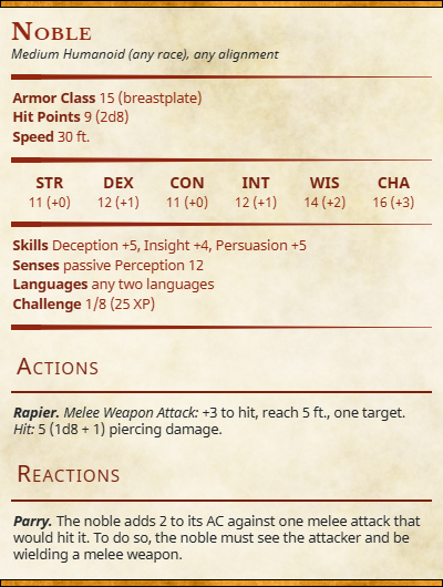 D&D Statblocks for Noble, Thug, Gladiator, Mage and Mercenary Mage – created in Tetra-cube.
