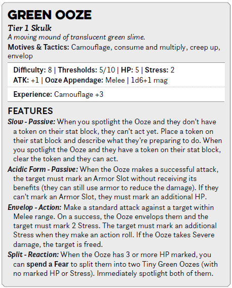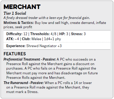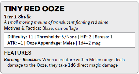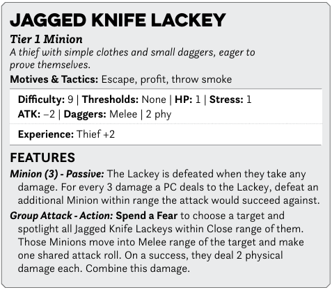 The above Adversary Stat blocks were sourced from theย Daggerheart System Reference Document 1.0ย and are the copyright of DRP, Darrington Press, who are the creators of the material (Adversary Stat Blocks). This content was not modified is licensed under the DRP Community Gaming License which can be found here:ย Darrington Press CGL.