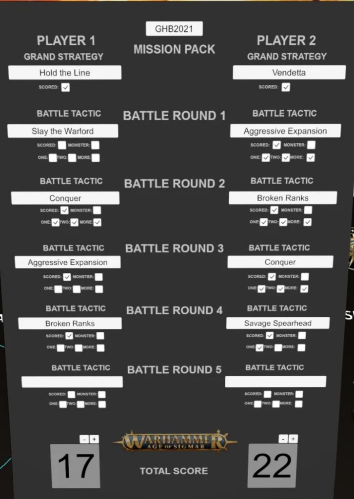 Scoring my tactic at the end of the round it was calculated that there was no chance for my opponent to come back from this.