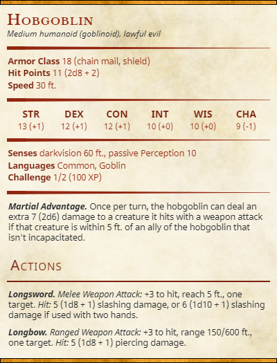 - Stat block