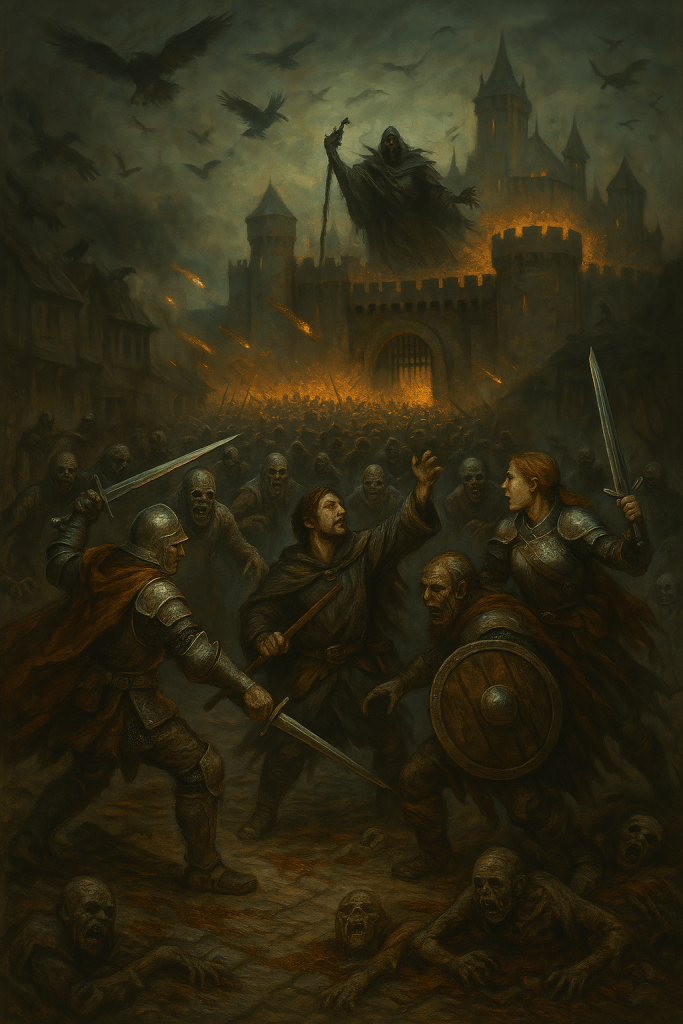 The adventurers fought tooth and nail, but survival meant more than simple victory, it meant escape. Wolves and twisting branches chased them through the choking forest until, at last, they burst free onto shattered stone. There, rising out of the morning fog like broken teeth, stood the ruins of Fortua reflecting mornings light from its grey stone. Though they had escaped the Wood Wraith’s immediate grasp, its dreadful presence lingered in their bones. The Wraith Woods had not claimed them… not yet.